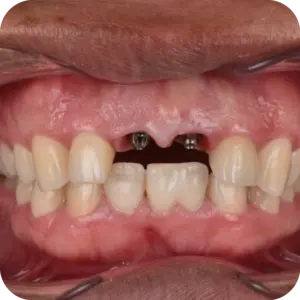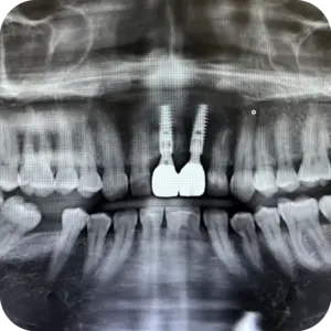 Se colocaron implantes en ambas piezas con pilares personalizados, logrando una base firme para su futura rehabilitación. El procedimiento fue realizado bajo protocolo quirúrgico controlado, con seguimiento radiográfico posterior.