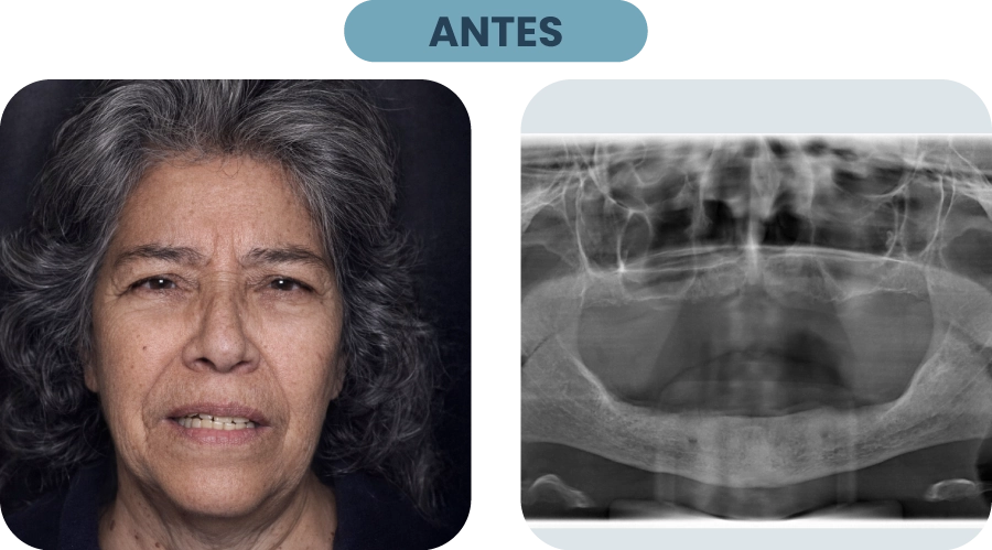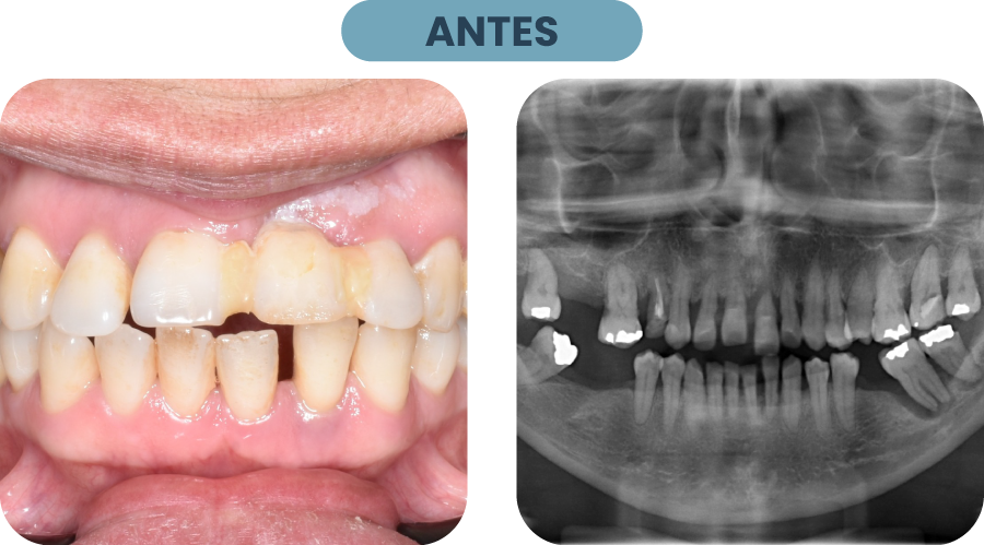 Tras consultar en distintos centros en busca de una solución definitiva, Olimpia llegó con movilidad dentaria, periodontitis avanzada y un importante compromiso estético en sus dientes anteriores, producto de tratamientos previos que no dieron resultado.