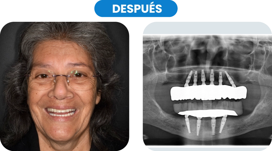 Tras dos años usando prótesis removibles que no le daban estabilidad ni seguridad al comer, Elvira decidió buscar una solución fija.